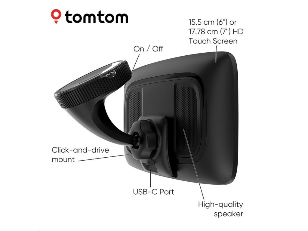 Prohlédněte si svou trasu ve velmi vysokých detailech na 6" / 7" dotykovém displeji, který se může chlubit nejlepším rozlišením na trhu. A díky ovládání pomocí hlasových příkazů můžete zařízení TomTom GO Expert Plus ovládat, aniž byste museli sundat ruce z volantu. Snadno použitelný držák Click-and-Drive navíc drží GPS navigaci bezpečně na místě.