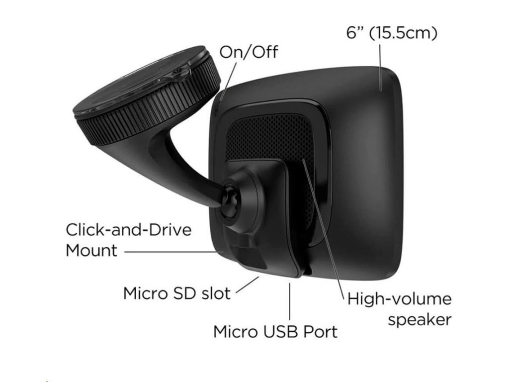 GPS navigace - do auta, úhlopříčka displeje 6", rozlišení 800 × 480 px, funkce ovládání hlasem, RDS TMC (aktualizovaný přehled dopravy), řazení do jízdních pruhů, souřadnice, 3D budovy, doživotní aktualizace map, aktuální čas jízdy a aktuální rychlost, dotykový displej, aktualizace přes mobilní telefon, příjem dopravních informací mobilním telefonem, vnitřní paměť 16000 MB, kapacita paměťové karty 32000 MB, kompatibilní OS Android a iOS, kompatibilní s Bluetooth, WiFi a USB, kabel a držák součástí balení, černá barva pouzdra, rozměry 163 × 106 × 18 mm (V׊×H), hmotnost 270 g