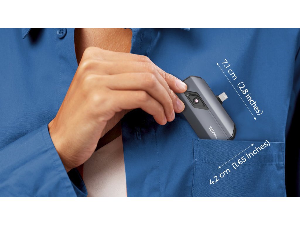 TC002 je kompaktní a lehký, rozměry jsou 7,1 cm x 4,2 cm x 1,4 cm a váha pouhých 30 gramů.