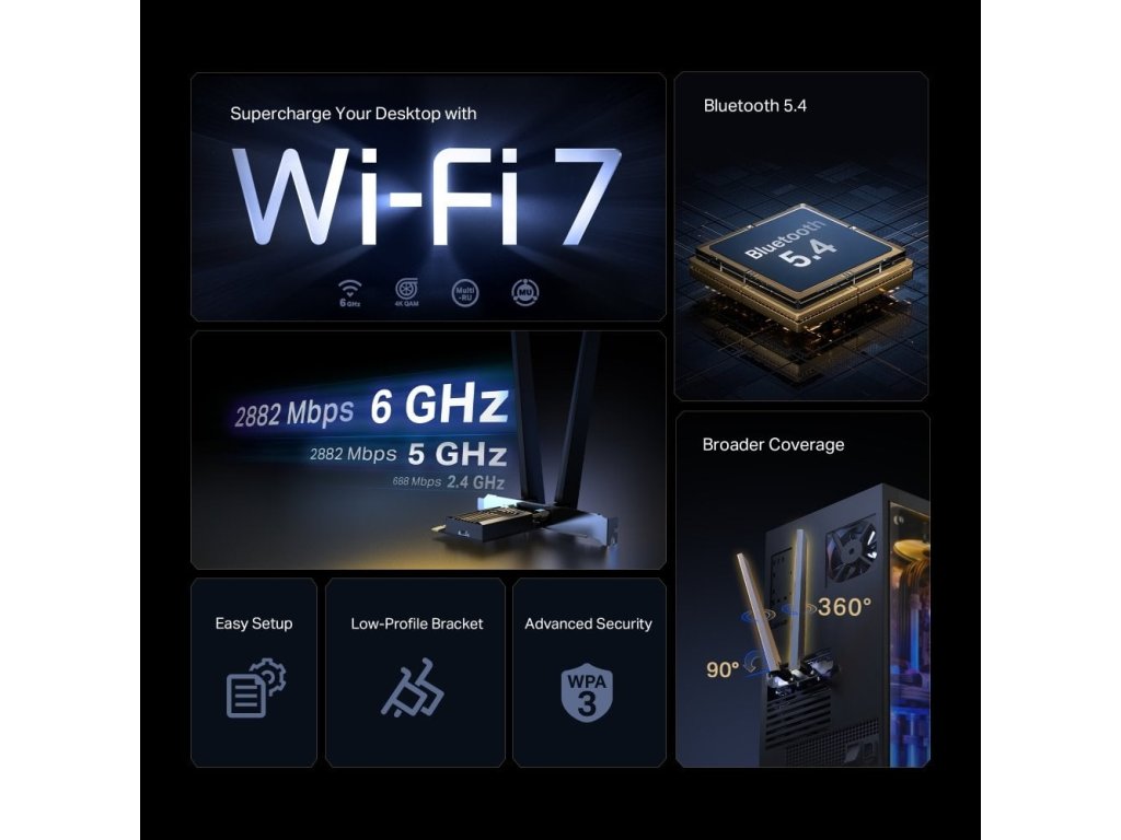 BE6500 Wi-Fi 7 Bluetooth adaptér 5.4 PCIe