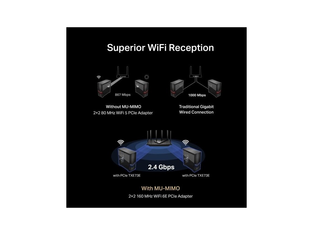 Tento adaptér nabízí bezkonkurenční třípásmovou rychlost až 2402 Mb/s (6 GHz),