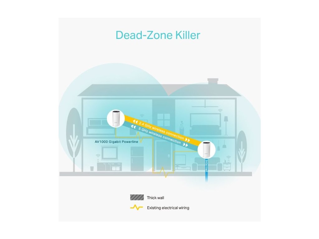 AC1200 Hybrid Mesh Wi-Fi System s Powerline, Qualcomm CPU, 867Mbps at 5GHz+300Mbps at 2.4GHz, AV1000 Powerline, HomePlug AV2, 2 Gigabit Ports, 2 internal antennas, MU-MIMO, Beamforming, Parental Controls, Quality of Service, Reporting, Access Point Mode