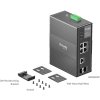 Switch je navržen pro náročné prostředí s provozní teplotou od -40 do 75 °C, ochranou proti přepětí 6 kV a duálním napájením 1+1, které zajišťuje nepřetržitý provoz i při selhání jednoho zdroje. Odolné hliníkové pouzdro s krytím IP40 a možnost montáže na DIN lištu nebo na stěnu poskytuje spolehlivou ochranu a flexibilní instalaci. Switch je tak ideální pro průmyslové prostředí i náročné firemní sítě.