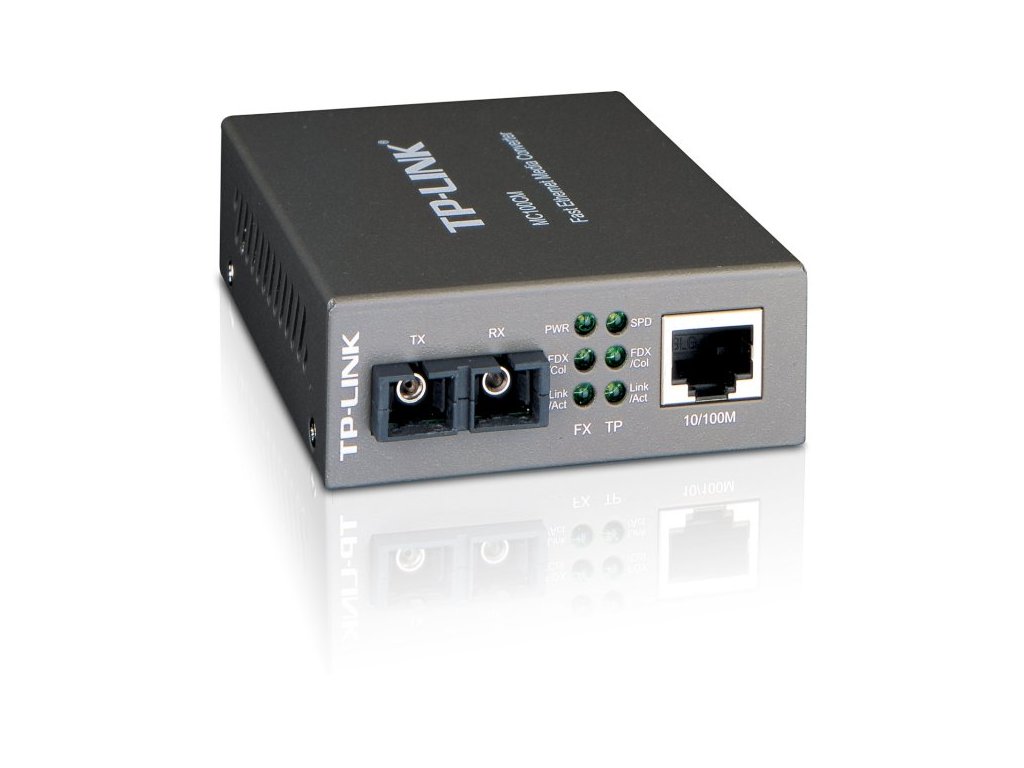 Media konvertor TP-LINK pro převod 10/100Base-T na optický 100Base-FX port, Multi-mode vlákno využitelný na vzdálenost až 2 km. Optický port má SC konektory, media konvertor využívá vlnové délky 1310 nm. Napájení externím napájecím adaptérem. Media konvertor je nástupcem modelu TR-932D.