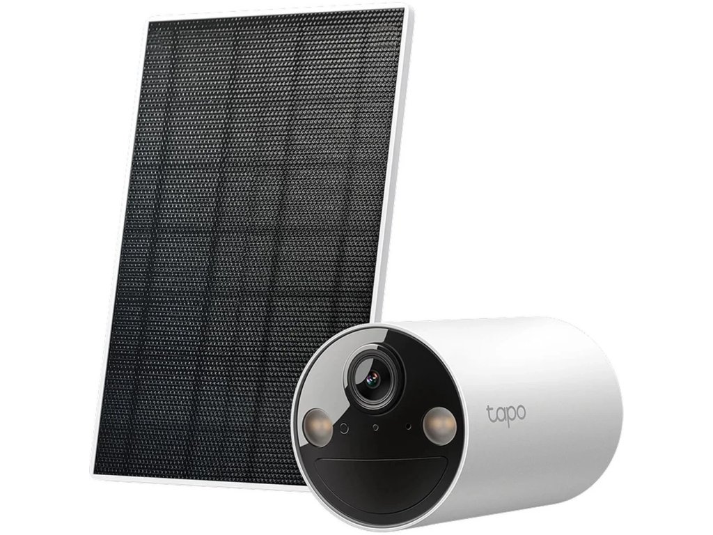 Solární sada kamery Tapo C410 + solární panel A201, 2K, Wi-Fi 2,4 GHz, nepřetržité napájení, AI detekce (pohyb/osoby), barevné noční vidění, obousměrný zvuk, alarm, IP65, Tapo, Google/Alexa