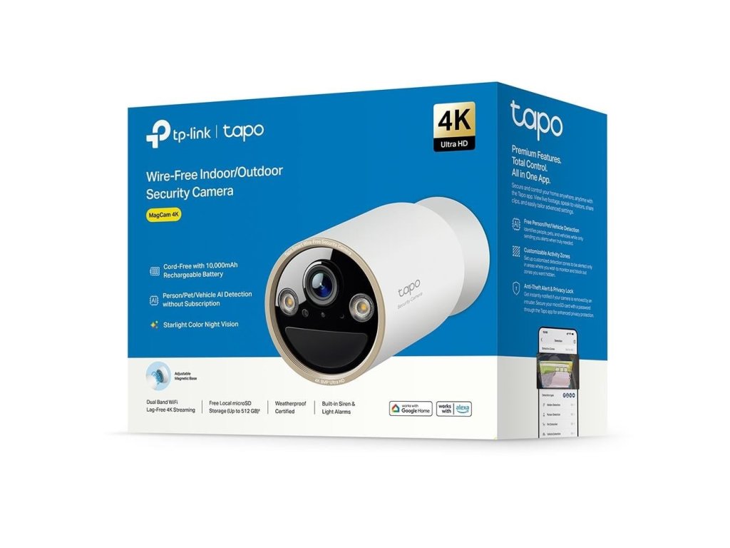IP kamera • venkovní použití • 4K rozlišení videa • úhel záběru 134° diagonálně a 113° vertikálně • noční vidění na 15 m • pokročilý detektor pohybu • odolnost IP66 • nahrávání na paměťové karty • podpora hlasových asistentů • aplikace pro Android i iOS