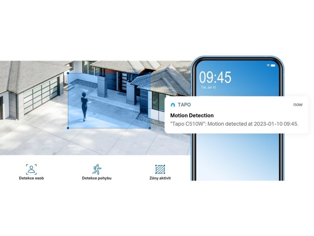 Detekce osob a sledování pohybu - s využitím umělé inteligence dokáže rozpoznat osoby a v případě potřeby vás upozornit. Můžete si také nastavit vlastní zóny aktivity, nebo hranice, abyste dostávali pouze relevantní upozornění