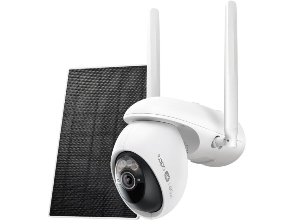 Solární Wi-Fi/4G kamera 4K 8MP, otáčení/nakl., AI detekce (pohyb/obličej/lidé/zvířata/auta), noční vidění, obousměrný zvuk, alarm, IP65, Tapo, Google/Alexa