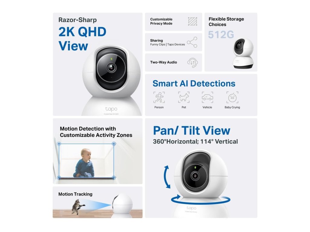 Široký rozsah pohybu: Vychutnejte si plný horizontální rozsah 360° a vertikální rozsah 114° pro otáčení a naklápění, což vám umožní pokrýt větší plochu.