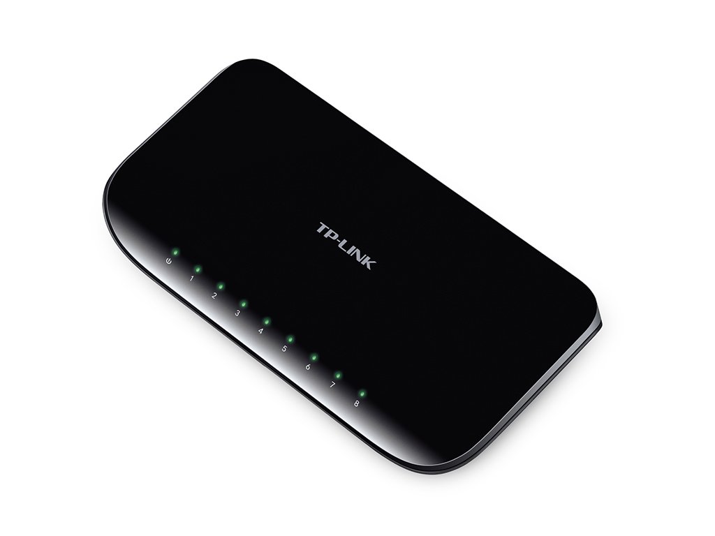 TL-SG1008D je vysokorychlostní gigabitový switch, který je ideální řešení pro pracovní skupiny. S 8 10/100/1000BASE-T gigabitovými Ethernet porty s AUTO-MDIX je jeho maximální rychlost 2000Mbps ve full duplex modu. Jednoduše viditelné LED indikátory zobrazují instalací kabelů a diagnostiku. Switch má plastový case a malé stolní provedení.