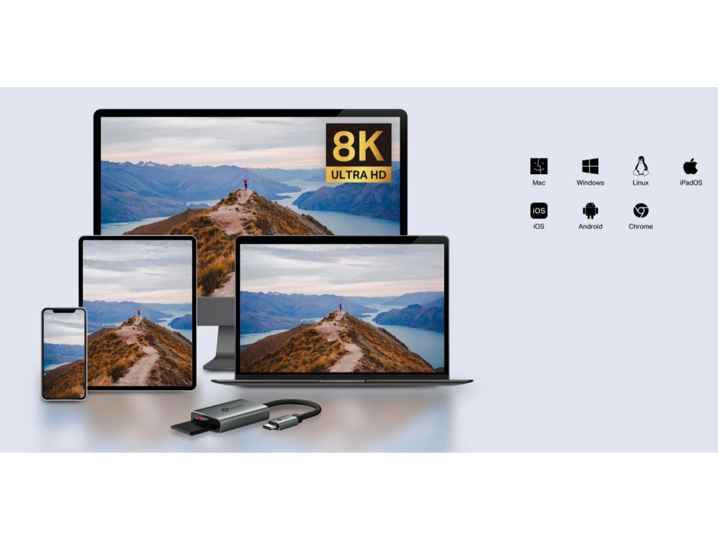 Špičková čtečka paměťových karet navržená pro pohodlnou a rychlou práci se soubory. Podporuje formáty SD, SDHC, SDXC, microSD a microSDHC až do kapacity 2 TB. Připojení k zařízení zajišťuje USB-C kabel o délce 15 cm s rychlostí přenosu až 5 Gbps. Díky technologii Plug and Play je kompatibilní s Mac OS, Windows, iPadOS, iOS, Android, Linux OS a Chrome OS. Nabízí rychlost čtení až 312 MB/s, což usnadňuje práci na různých zařízeních, od počítačů po chytré telefony.