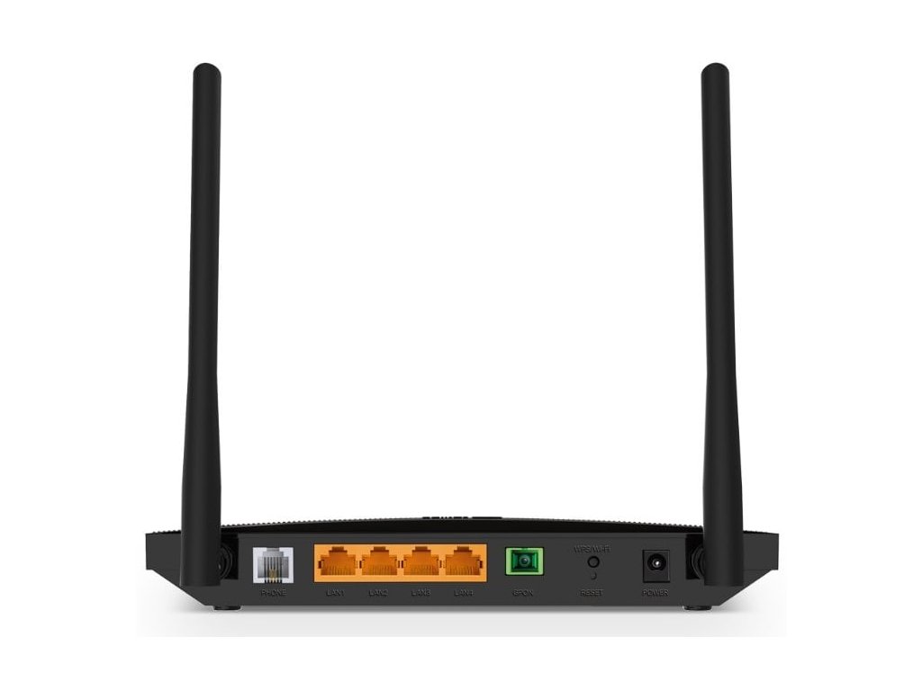 TP-Link XC220-G3v je Gigabitový GPON router s 802.11ac Wi-Fi, dvěma fixními anténami , 4x Gigabit LAN a integrovanou bránou pro VoIP volání. Router je ideální zařízení pro FTTH (fiber to the home) instalaci. Jedná se o ONU jednotku s jedním optickým portem typu SC s APC broušením, dosahem 20 km, vlnovou délkou 1310/1490 nm a rychlostí 2,488/1,244 Gbps.