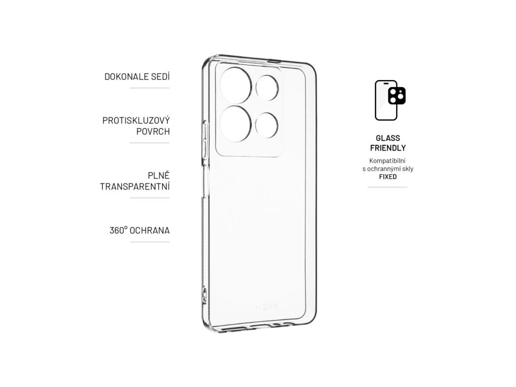 Gelové pouzdro FIXED představuje jednoduchou, ale přesto efektivní ochranu vašeho chytrého telefonu. Je vyrobeno z TPU materiálu, který chrání boky a záda přístroje před poškrabáním, prachem a případnými pády. Plně transparentní provedení nechá vyniknout originálnímu designu vašeho mobilního telefonu. Pouzdro je vyrobeno přesně na míru daného zařízení, nezakrývá nabíjecí ani sluchátkové konektory. Okraje pouzdra lehce přesahují displej a chrání ho tak před poškrábáním, pro maximální ochranu telefonu je však vhodné doplnit pouzdro sklem na displej.
