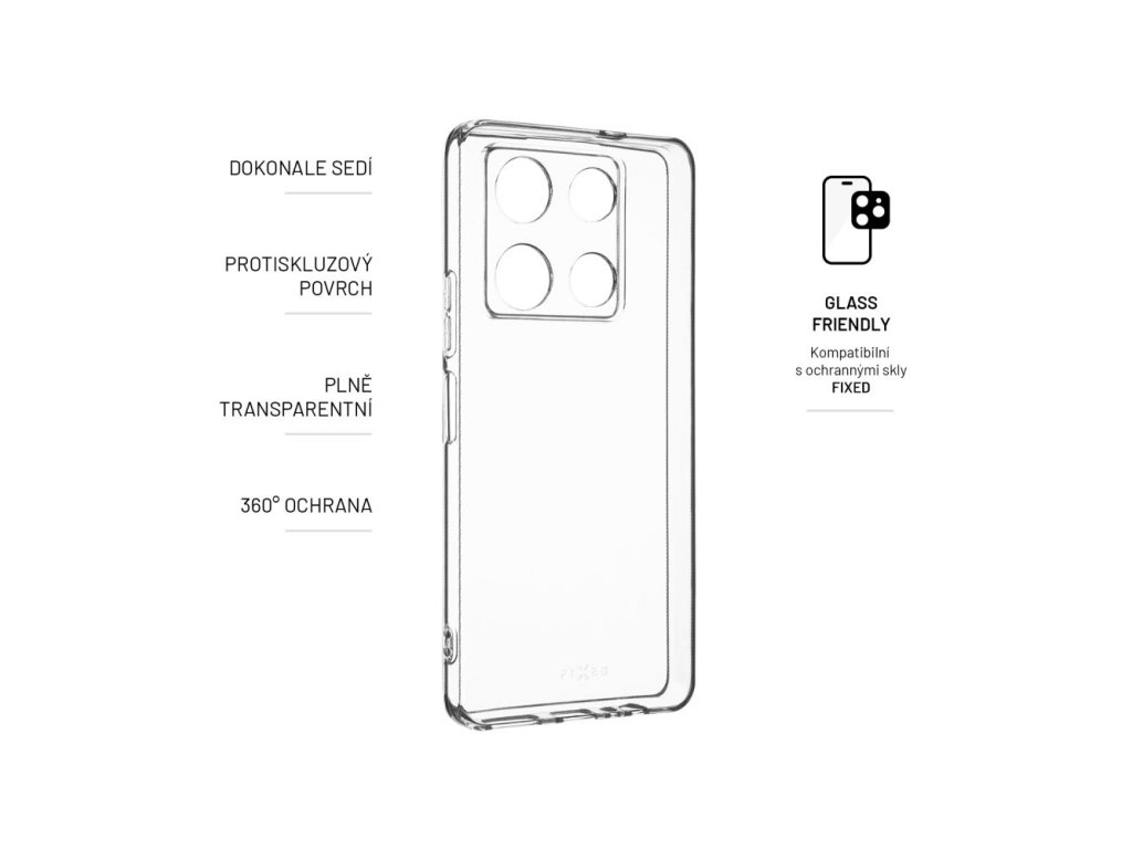 Gelové pouzdro FIXED představuje jednoduchou, ale přesto efektivní ochranu vašeho chytrého telefonu. Je vyrobeno z TPU materiálu, který chrání boky a záda přístroje před poškrabáním, prachem a případnými pády. Plně transparentní provedení nechá vyniknout originálnímu designu vašeho mobilního telefonu. Pouzdro je vyrobeno přesně na míru daného zařízení, nezakrývá nabíjecí ani sluchátkové konektory. Okraje pouzdra lehce přesahují displej a chrání ho tak před poškrábáním, pro maximální ochranu telefonu je však vhodné doplnit pouzdro sklem na displej.