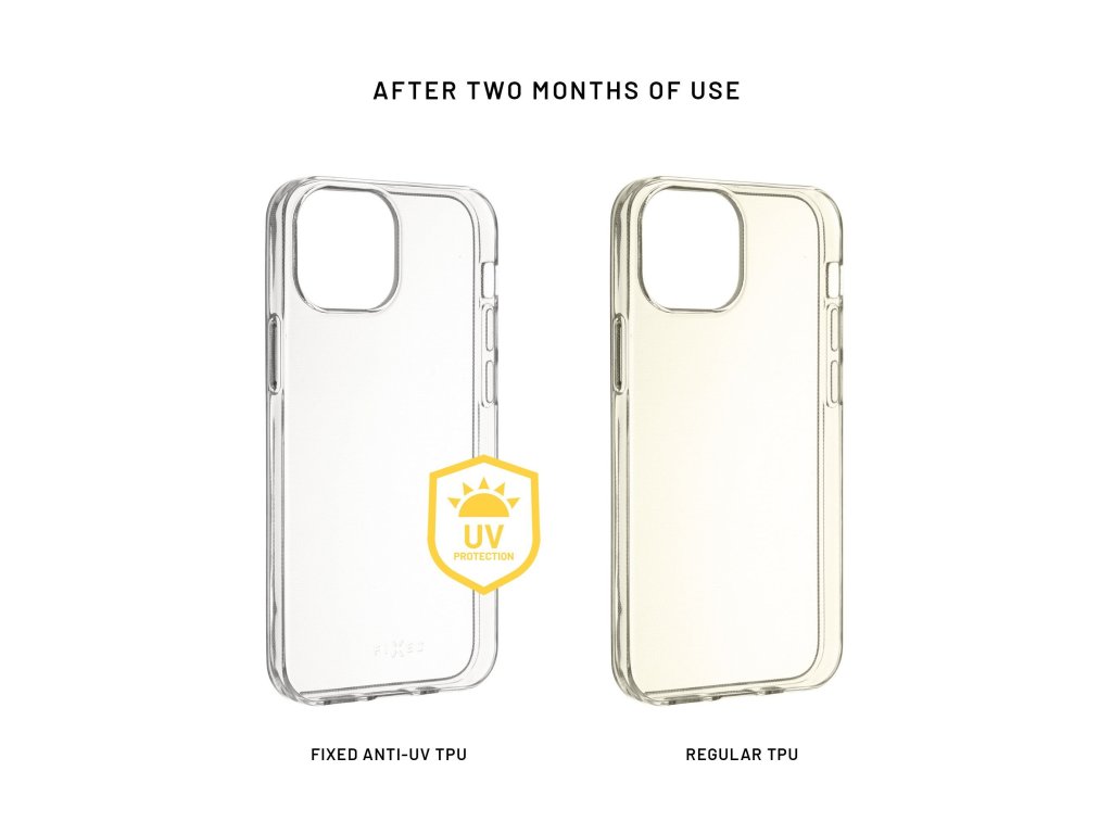 Gelové pouzdro FIXED představuje jednoduchou, nenápadnou, a přesto efektivní ochranu vašeho chytrého telefonu. Je vyrobeno ze speciálního TPU materiálu s AntiUV úpravou, která chrání před žloutnutím krytu vlivem slunečního záření. Oproti běžným gelovým krytům tak i po čase zůstává stále jako nové. Pouzdro chrání boky a záda přístroje před poškrabáním, prachem a případnými pády. Plně transparentní provedení nechá vyniknout originálnímu designu vašeho mobilního telefonu. Každé z pouzder FIXED je vyrobeno přesně na míru daného zařízení, nezakrývá nabíjecí ani sluchátkové konektory. Okraje pouzdra lehce přesahují displej a chrání ho tak před poškrábáním, pro maximální ochranu telefonu je však vhodné doplnit pouzdro sklem na displej.