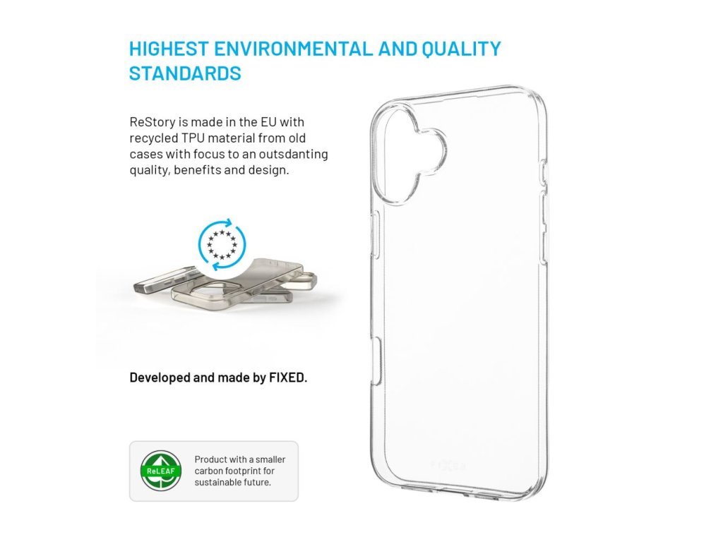 Pod značkou FIXED ReLeaf vzniká kryt ReStory, který na první pohled vypadá jako každý jiný, ale je vyrobený z neprodaných krytů, které by jinak skončily jako odpad. Místo likvidace jsou tyto kryty recyklovány a přetvořeny na nové. Celý proces recyklace, výroby a balení probíhá v České republice, což výrazně snižuje uhlíkovou stopu ve srovnání s kryty dováženými z dalekých koutů světa.