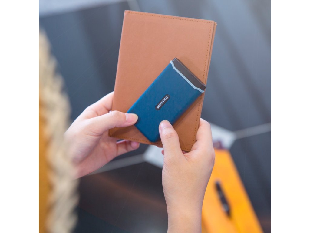 externí přenosný SSD disk, 3D NAND flash, USB typ-C rozhraní USB 3.1 Gen 2, M.2 PCIe, UASP, až 1050/950 MB/s, hliníkové tělo v silikonovém pouzdře, rozměry 96.5 x 53.6 x 12.5 mm, kabely na USB C i A, Navy Blue - modrá