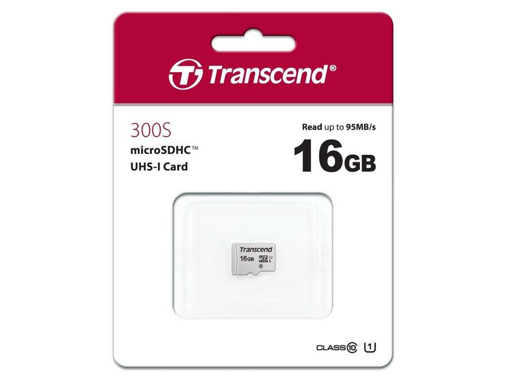 Transcend 16GB microSDHC 300S UHS-I U1 (Class 10) paměťová karta (bez adaptéru), čtení až 95MB/s