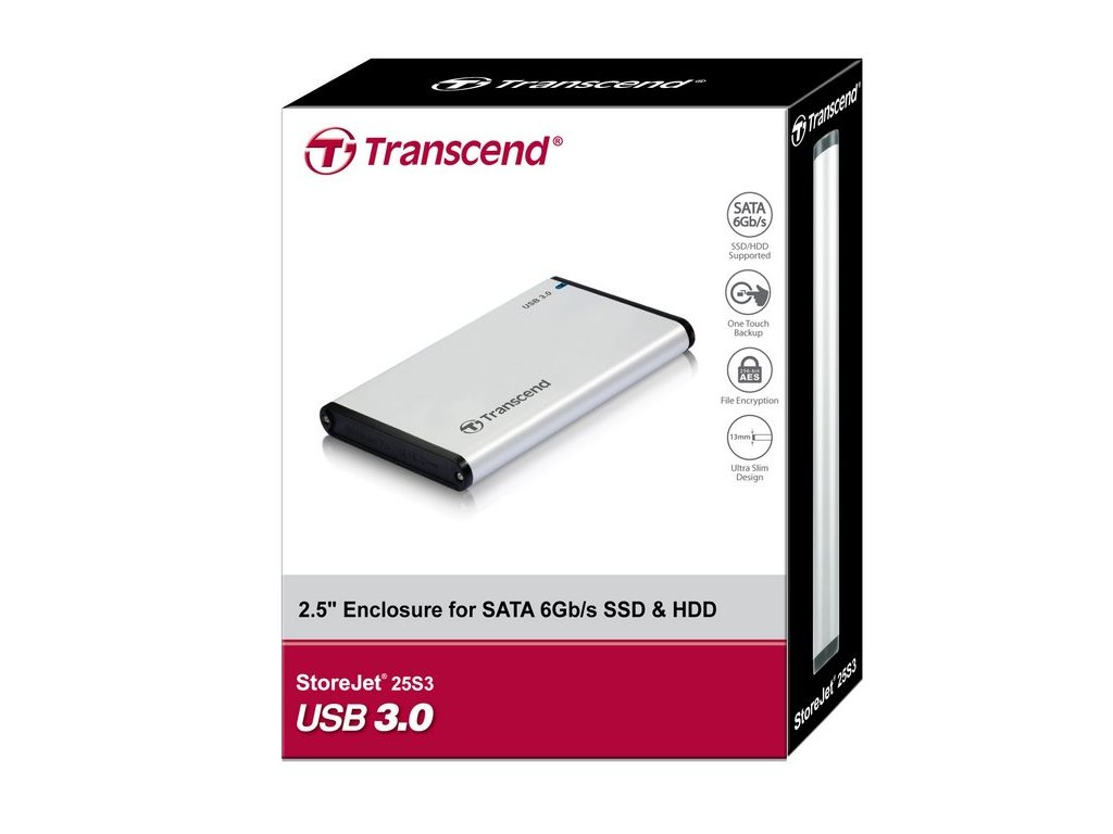 Přenosný USB 3.0 StoreJet 2.5S3 používá stylově navržené hliníkové pouzdro na 2,5-palcový SATA pevný disk. Neuvěřitelná SuperSpeed USB 3.0 rychlost přenosu. StoreJet 25S3 je dokonalý systém pro správu dat, nahrávání, stahování, skladování, přenos a zálohování důležitých dat a informací včetně médií, jako jsou filmy, fotografie, hudbu a hry.
