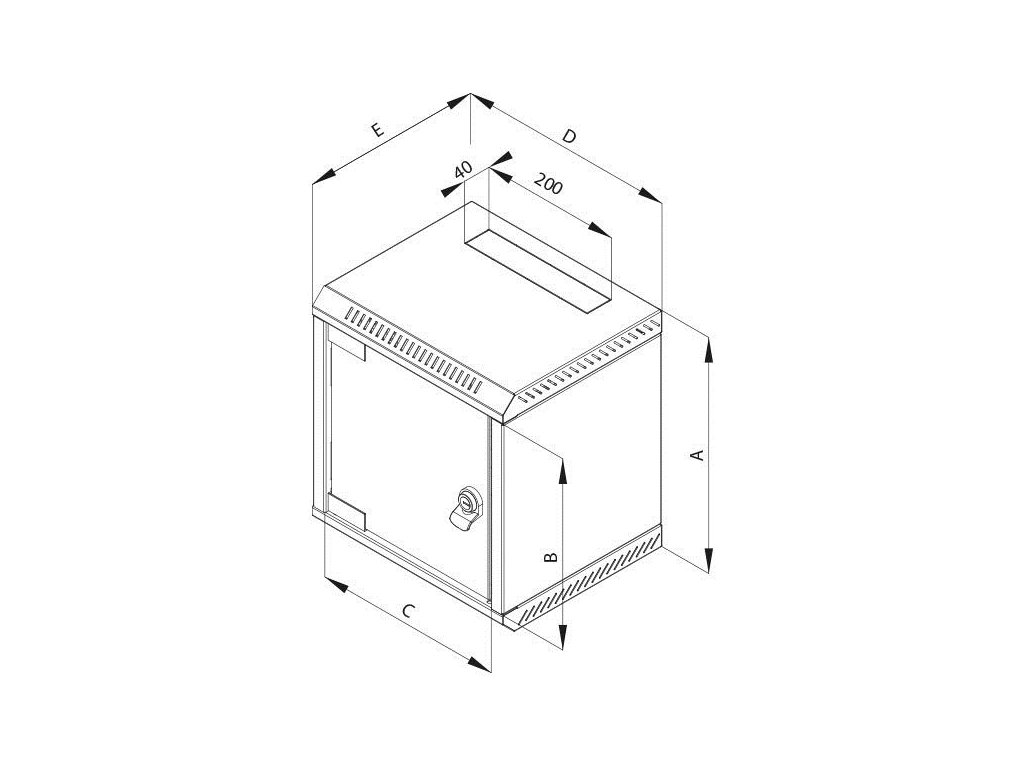 Rozměry RBA-04-AS3; A = 248 mm; B = 169 mm; C = 270 mm; D = 310 mm; E = 260 mm; R1 = 212 mm; R2 = 215 mm; Váha NETTO: 5,4 kg; Váha BRUTTO: 5,5 kg; Maximální zatížení: 20 kg; Příbaly: - Klíč - přední dveře 2x; - Vrut 6x50 4x; - Podložka 6,6 4x; - Hmoždi...