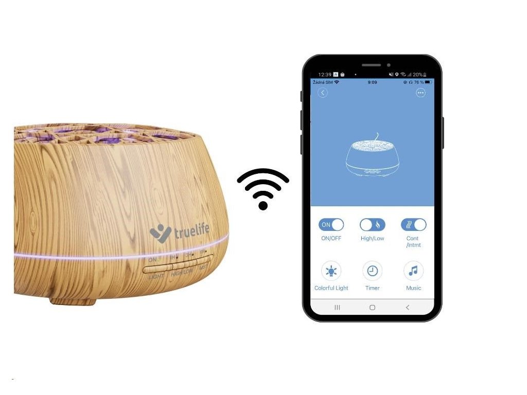 Difuzér lze připojit pomocí Bluetooth k mobilnímu telefonu a ovládat jej přes mobilní aplikaci.