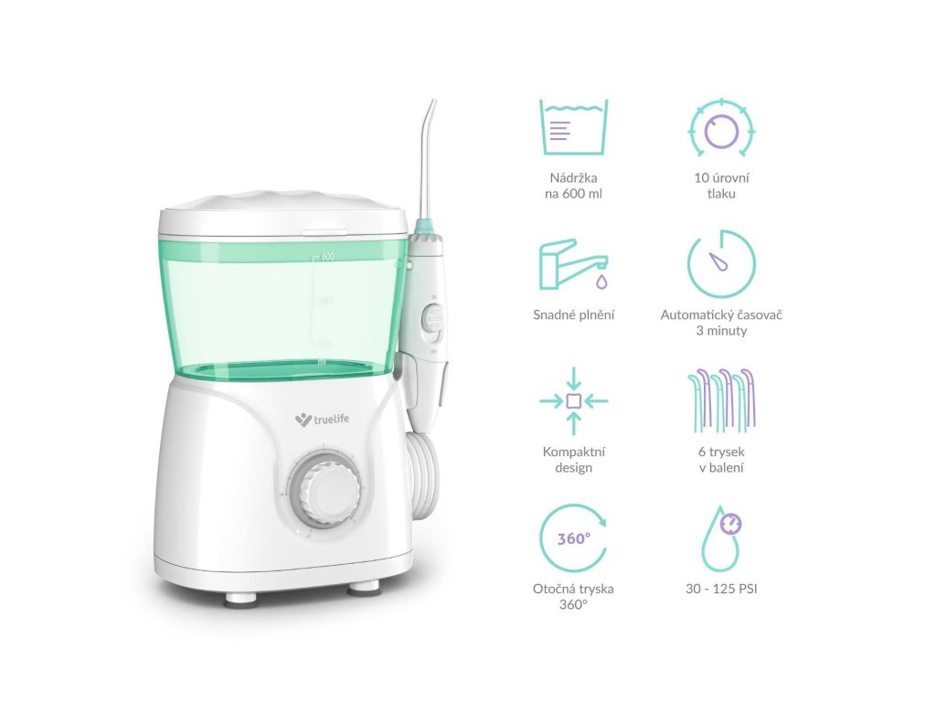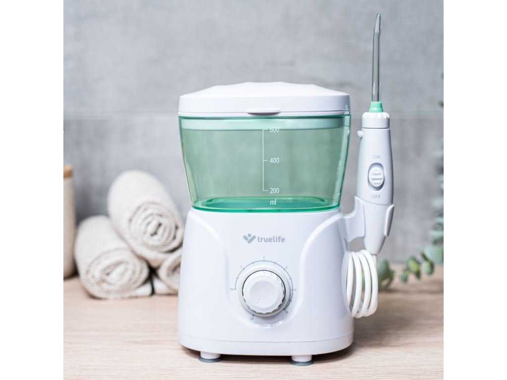 S ústní sprchou TrueLife AquaFloss Station S600 je čištění mezizubních prostor snazší a šetrnější, než při použití mezizubních kartáčků či nití. Díky technologii StreamTrue® zubní sprcha odstraní až 99 % zubního plaku a vyčistí vaše zuby tak, jak to samotný kartáček nikdy nedokáže.
