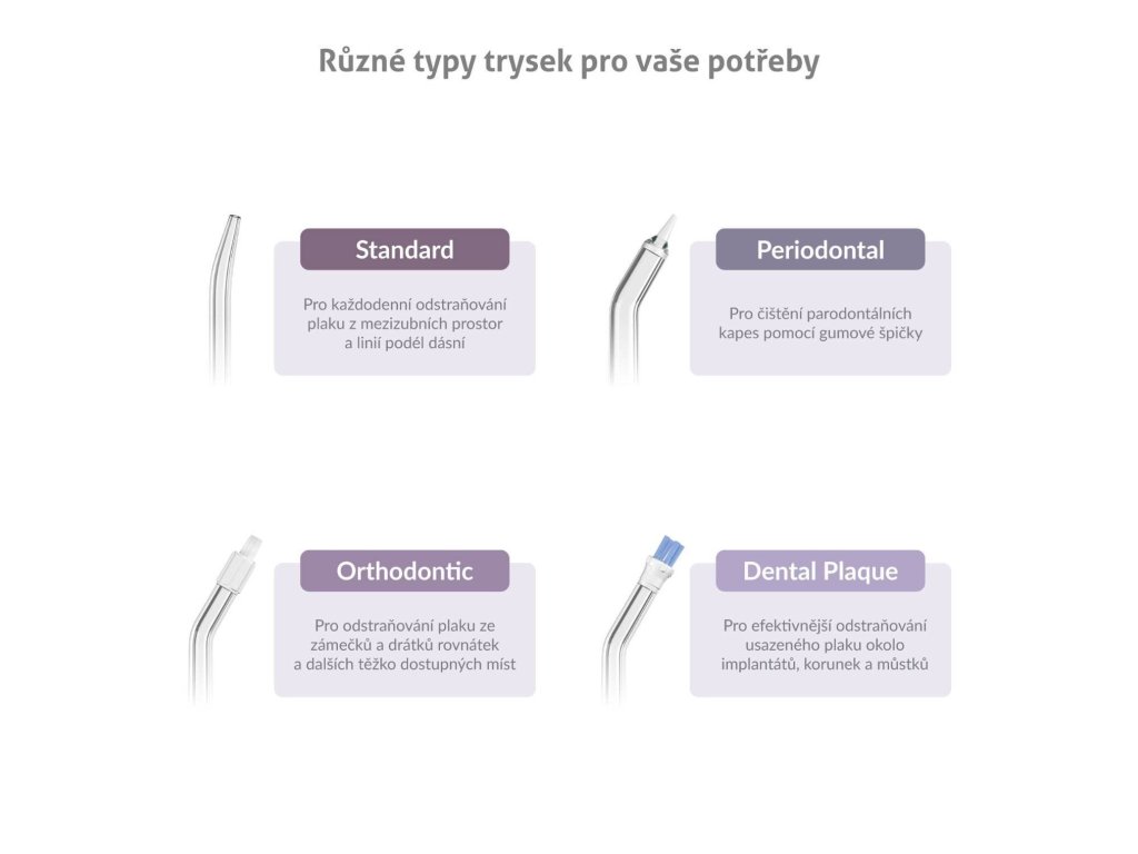 Náhradní trysky Station – 3× Standard, 1× Dental Plaque, 1× Orthodontic, 1× Periodontal