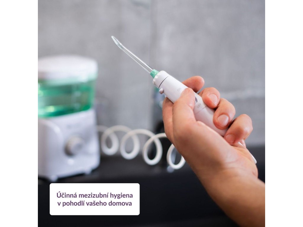 Hlavice trysky je otočná o 360 stupňů, takže snadno vyčistí všechna zákoutí vašich úst.