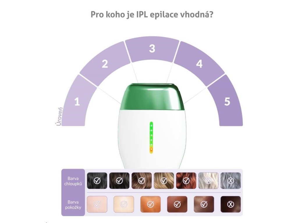 Pomocí ovládacího tlačítka si sami zvolíte požadovanou úroveň světla, která odpovídá vašemu typu pokožky.