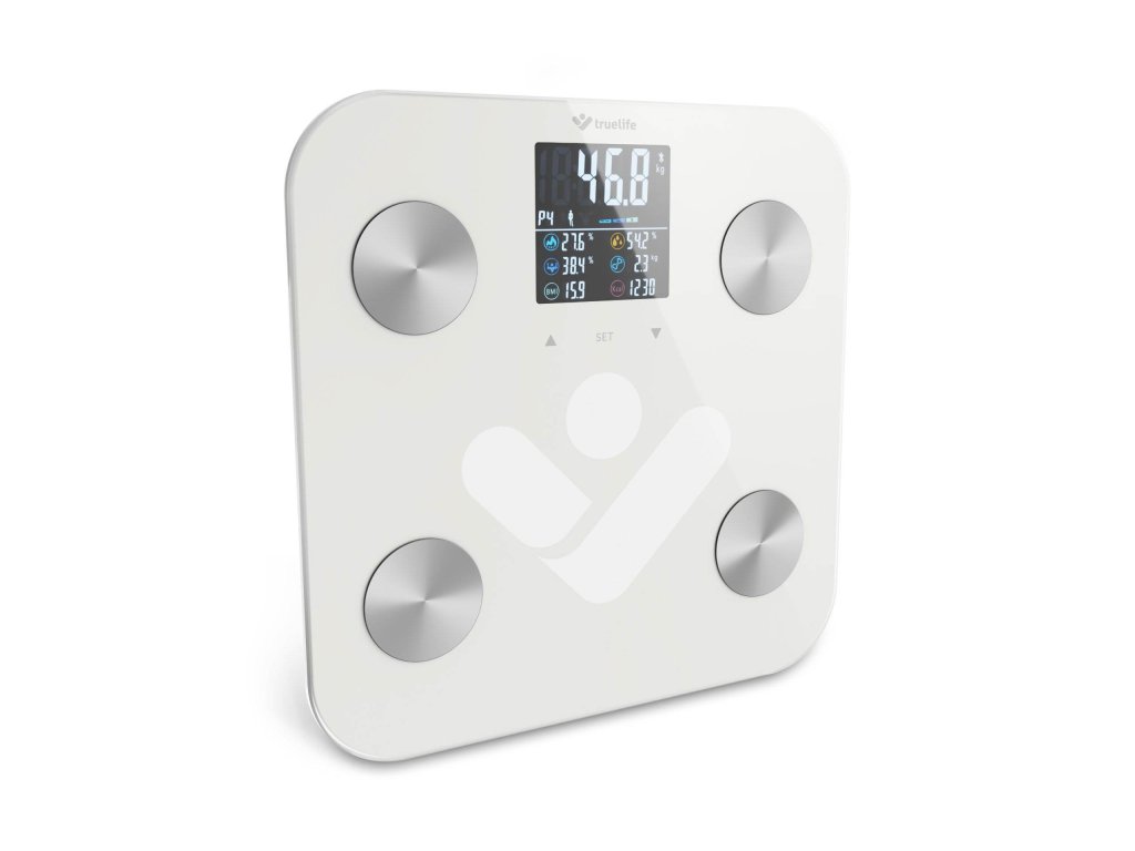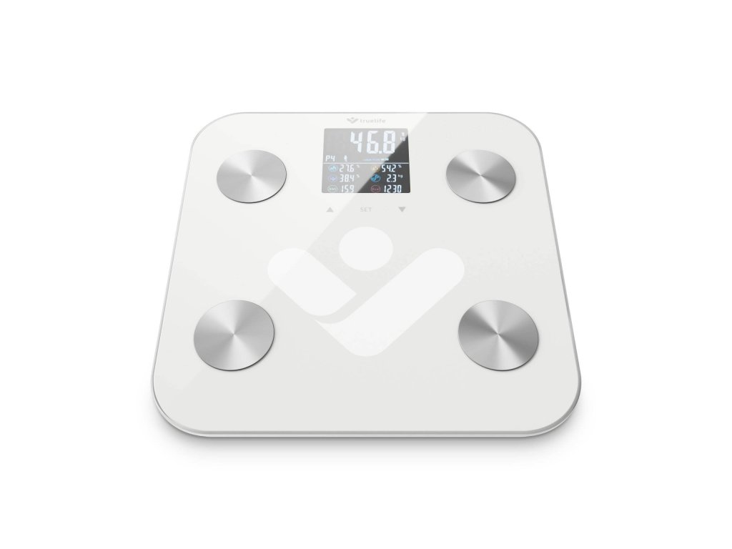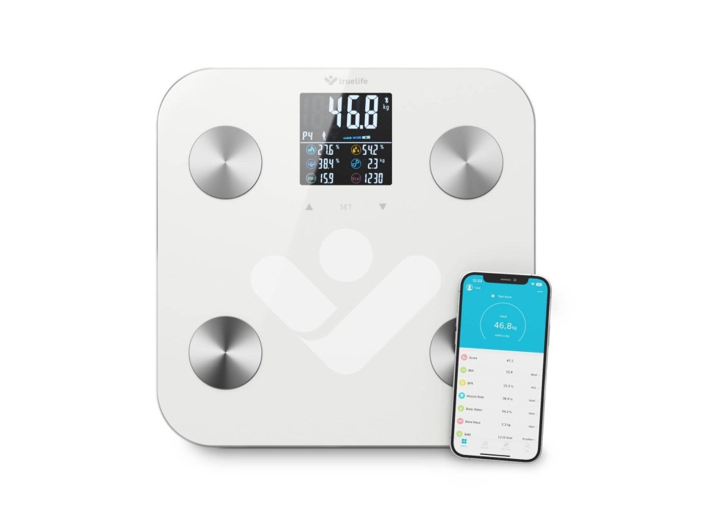 Svůj zdravý životní styl nejlépe podpoříte, budete-li dokonale rozumět svému tělu. Pomoci vám v tom může inteligentní váha TrueLife FitScale W7 BT. Kromě zjištění hmotnosti, provede také diagnostiku pomocí bioelektrické impedanční analýzy a vypočítá 19 měřitelných indexů, z toho 7 i bez použití aplikace. Své výsledky vidí uživatel na přehledném barevném LCD displeji. Váhu lze propojit prostřednictvím Bluetooth s mobilním telefonem a stažením aplikace získáte ještě detailnější přehled o tom, co se s vaším tělem děje. Váha je vyrobena z tvrzeného ITO skla, které je velmi odolné a má nosnost až 180 kg. Zaměřte se na své zdraví komplexně, pouhá hmotnost není tím hlavním ukazatelem.
