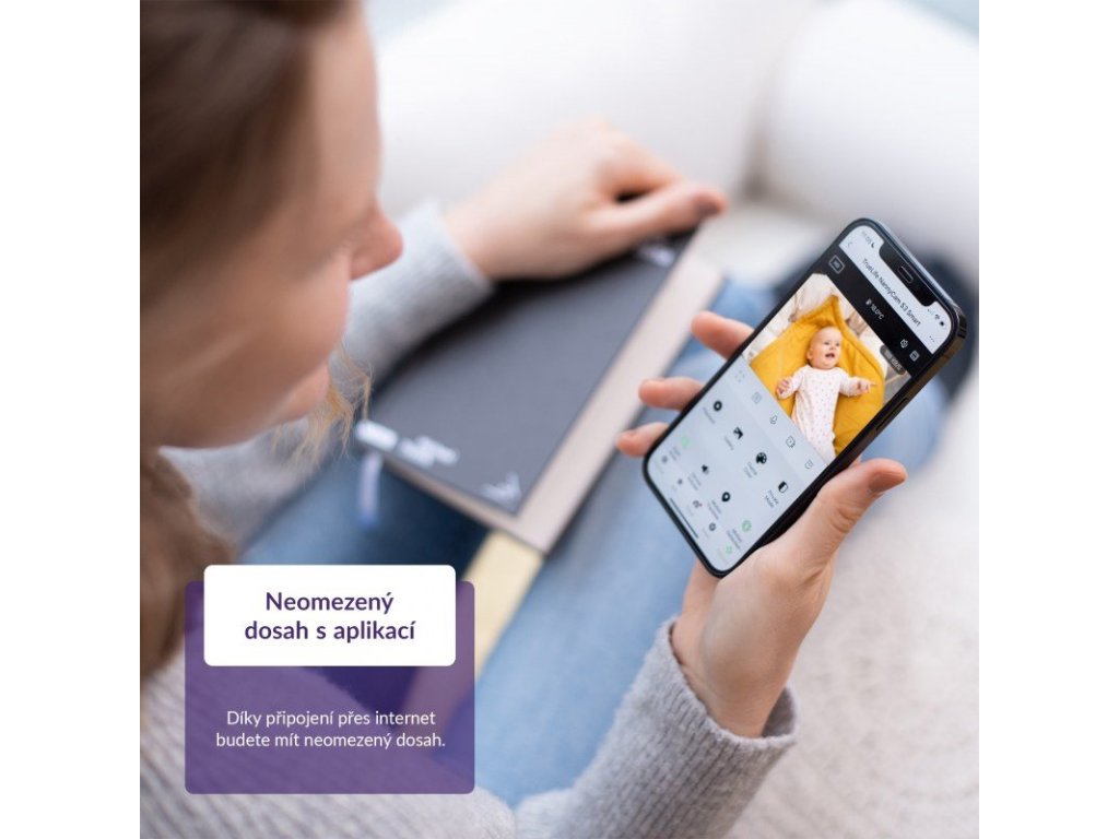 Samotná chůvička potřebuje být v dosahu Wi-Fi, ale obraz a zvuk již pak přijmete díky aplikaci kdekoliv na světě.