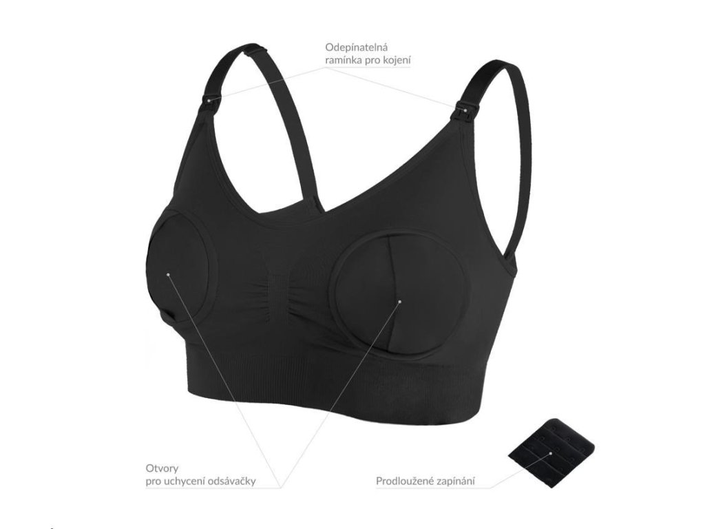 Nutrio Bra zároveň slouží i jako běžná kojící podprsenka s odepínatelnými ramínky, kterou můžete nosit pohodlně celý den. Je dostupná ve čtyřech velikostech. Součástí balení je jedno prodloužené zapínání, obvod podprsenky si tak můžete nastavit dle vašich potřeb.