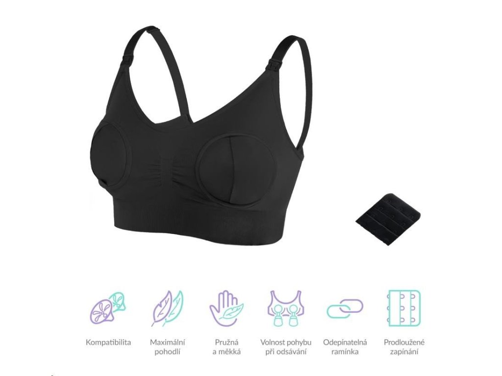 Vlastnosti a funkce Speciální otvory v košíčkách pro uchycení odsávačky, odepínatelná ramínka pro kojení, bez kostic, kompatibilní s odsávačkami TrueLife i jinými odsávačkami na trhu, možnost praní