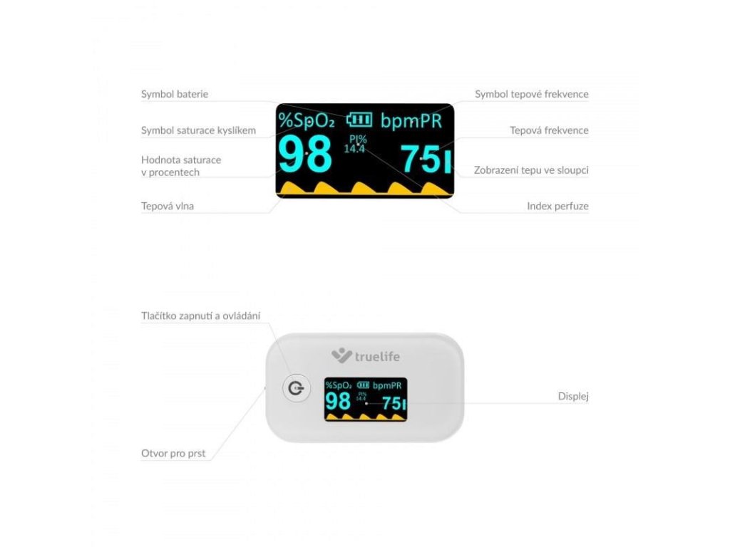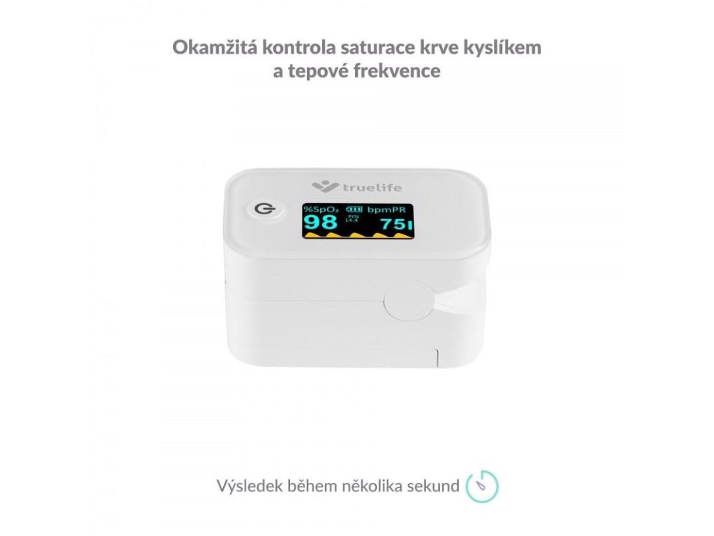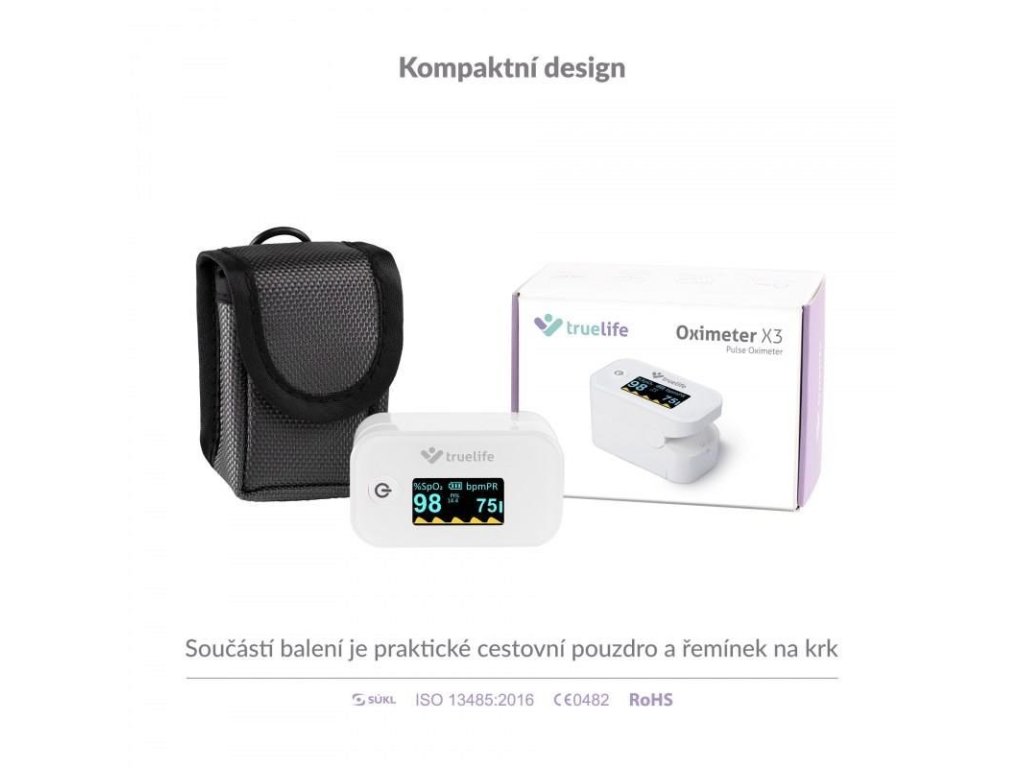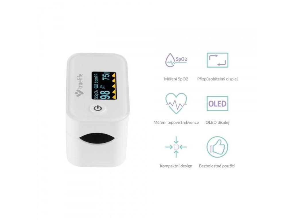 Oxymetr TrueLife X3 zajistí okamžité a přesné měření saturace krevního hemoglobinu kyslíkem a tepové frekvence. Naměřené hodnoty okamžitě a přehledně zobrazí na vestavěném displeji. Je vhodný zejména pro pacienty s respiračním onemocněním nebo onemocněním srdce, ale i pro vrcholové sportovce. Své uplatnění ale nalezne v lékárničce každé domácnosti.