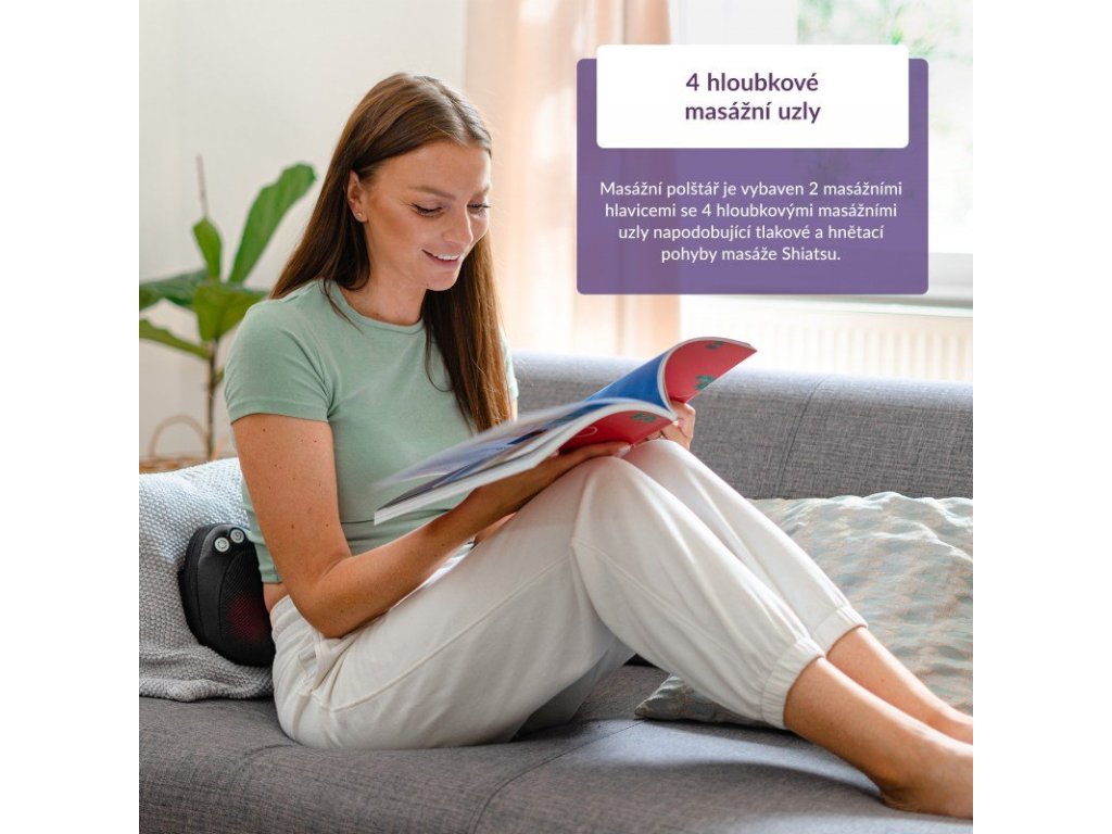 Masážní polštář je vybaven 4 hloubkovými masážními uzly napodobující tlakové a hnětací pohyby masáže Shiatsu.