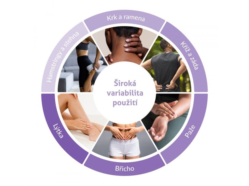 Masážní polštář má širokou škálu využití, zvládnete s ním masáž krku, kříže, stehen, paží, břicha, lýtek či chodidel.