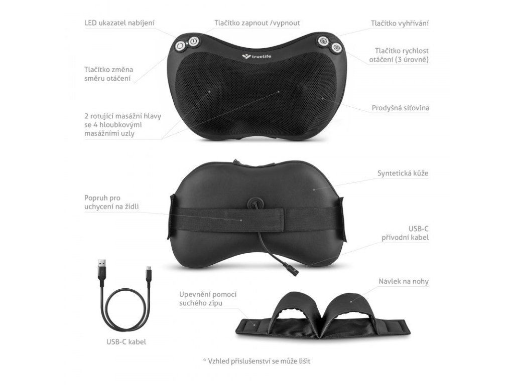 TrueLife RelaxBack B3 Charge - masážní polštář s dobíjecí baterií