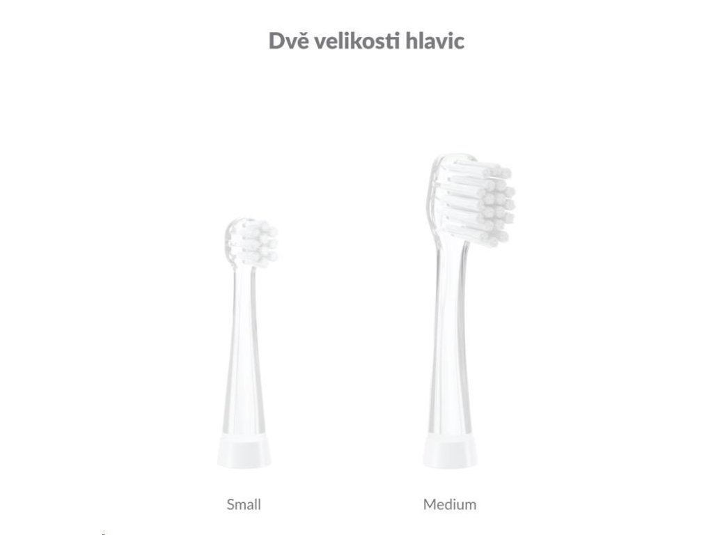 Součástí balení jsou 2 hlavice Small a 1 hlavice Medium, kartáček tak může používat více dětí. Jiné typy hlavic lze dokoupit.