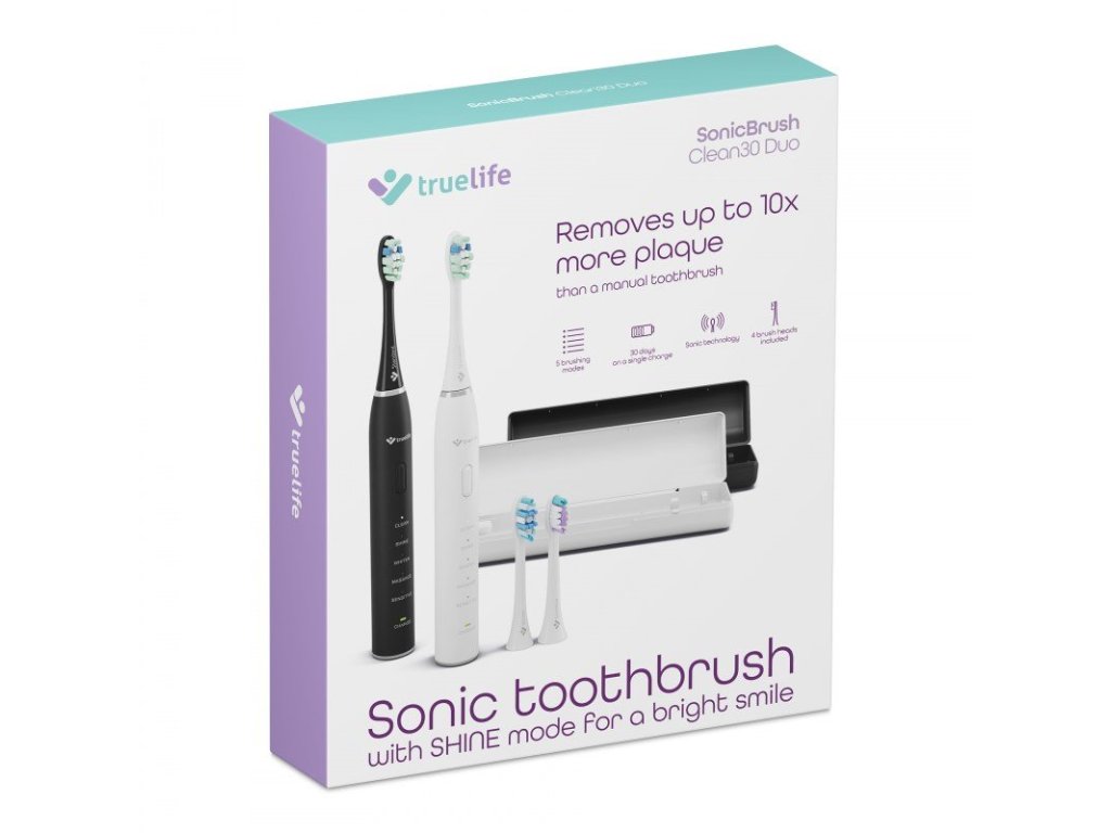 TrueLife SonicBrush Clean30 Duo - sada 2 sonických zubních kartáčků, černý a bílý + pouzdra a hlavice