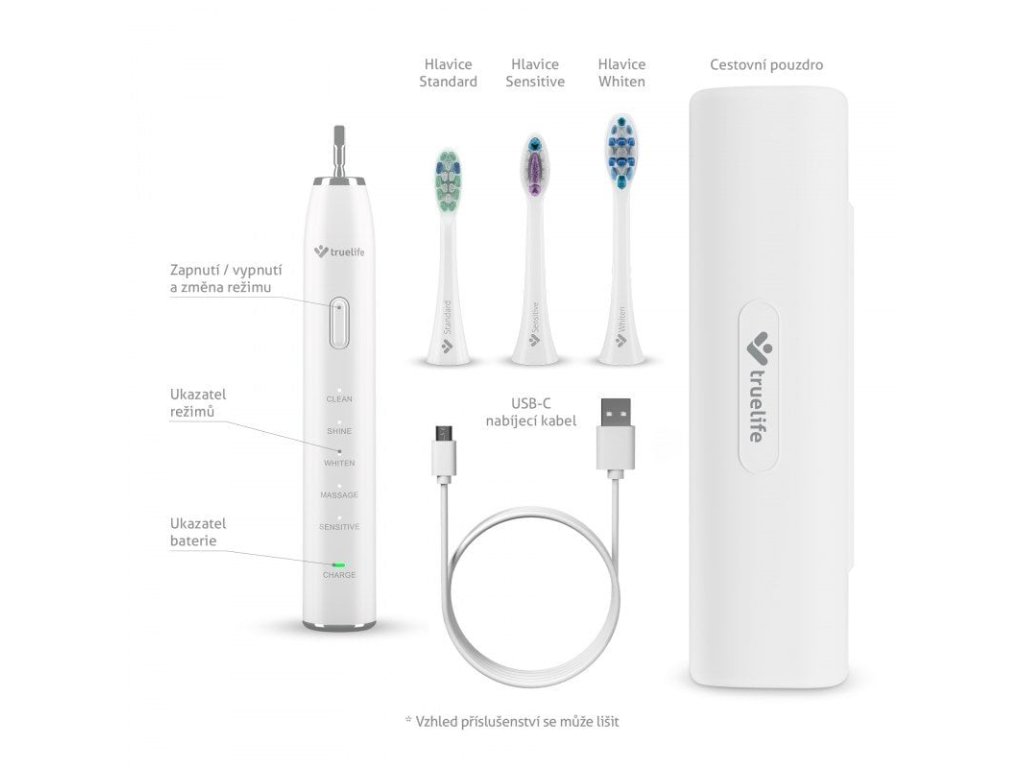 Pravidelná dentální péče je základem každodenních hygienických rituálů. Zajistí vám nejen krásný úsměv, ale návštěva zubaře už pro vás nebude strašákem. Díky sadě dvou sonických kartáčků TrueLife SonicBrush Clean30 v kombinaci Black & White si tento komfort můžete dopřát třeba spolu s partnerem. Kartáčky jsou vybaveny sonickou technologií SonicTrue® a 70 000 pohybů za minutu, které každý z nich vykoná, dokonale a šetrně vyčistí zuby. Využít však lze i režimu pro masáž dásní. Kartáčky disponují 5 režimy – Clean, Shine, Whiten, Massage a Sensitive. Součástí duo packu jsou 4 hlavice (2 Standard, Sensitive a Whiten), u nichž snadno poznáte, kdy je čas na výměnu, a to díky modrým štětinkám, které po určité době zbělají. Ke každému kartáčku náleží cestovní pouzdro, opět v černém a bílém provedení. Baterie kartáčku vydrží 30 dní a následně jsou pro dobití určeny přiložené USB-C kabely.