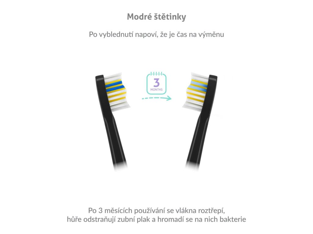 Naštěstí jsou hlavice opatřeny modrými štětinami, které po 3 měsících vyblednou a vy tak víte, že je načase hlavice vyměnit.