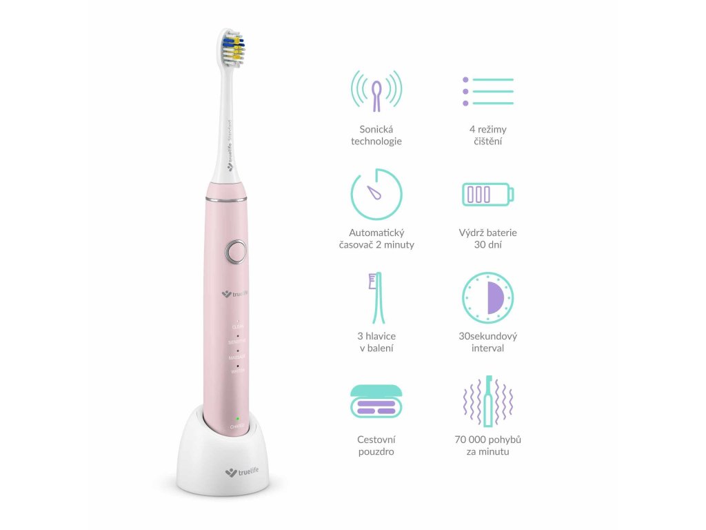 Hlavice kartáčku kmitá ve vysoké frekvenci 70 000 pohybů za minutu. Jemné vibrace nedají šanci zubnímu plaku, pigmentovým skvrnám ani bakteriím. Technologie SonicTrue® je oproti rotačním kartáčkům šetrnější k zubní sklovině. Kartáček zároveň víří pastu s vodou, vhání je do mezizubních prostor a tím je pomáhá čistit.