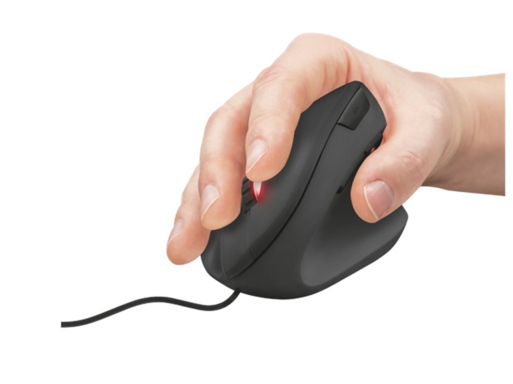 Vertikální herní myš v ergonomickém provedení pro nižší zátěž ramene a zápěstí