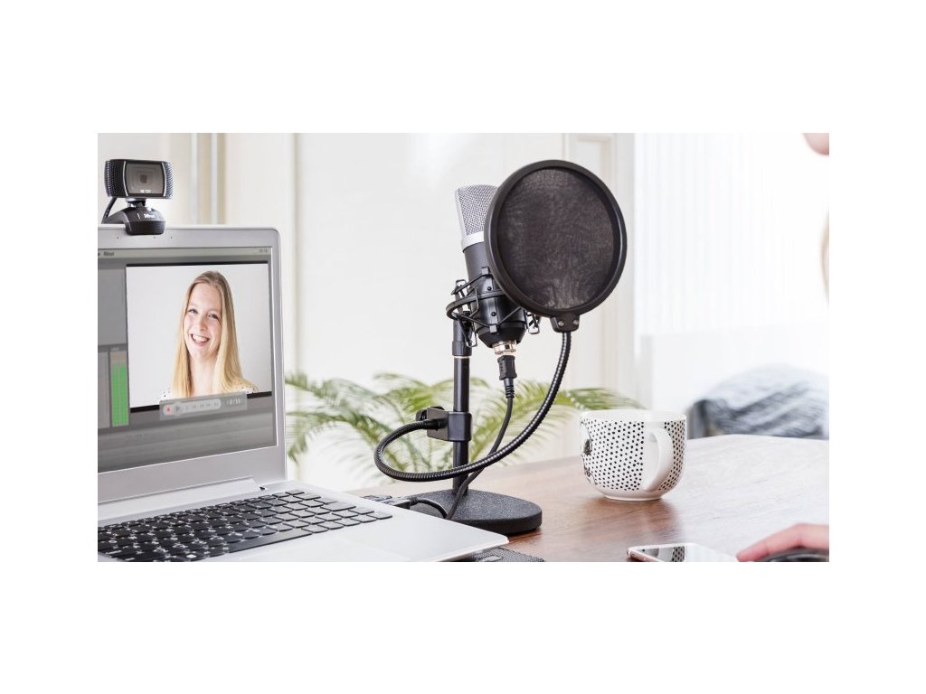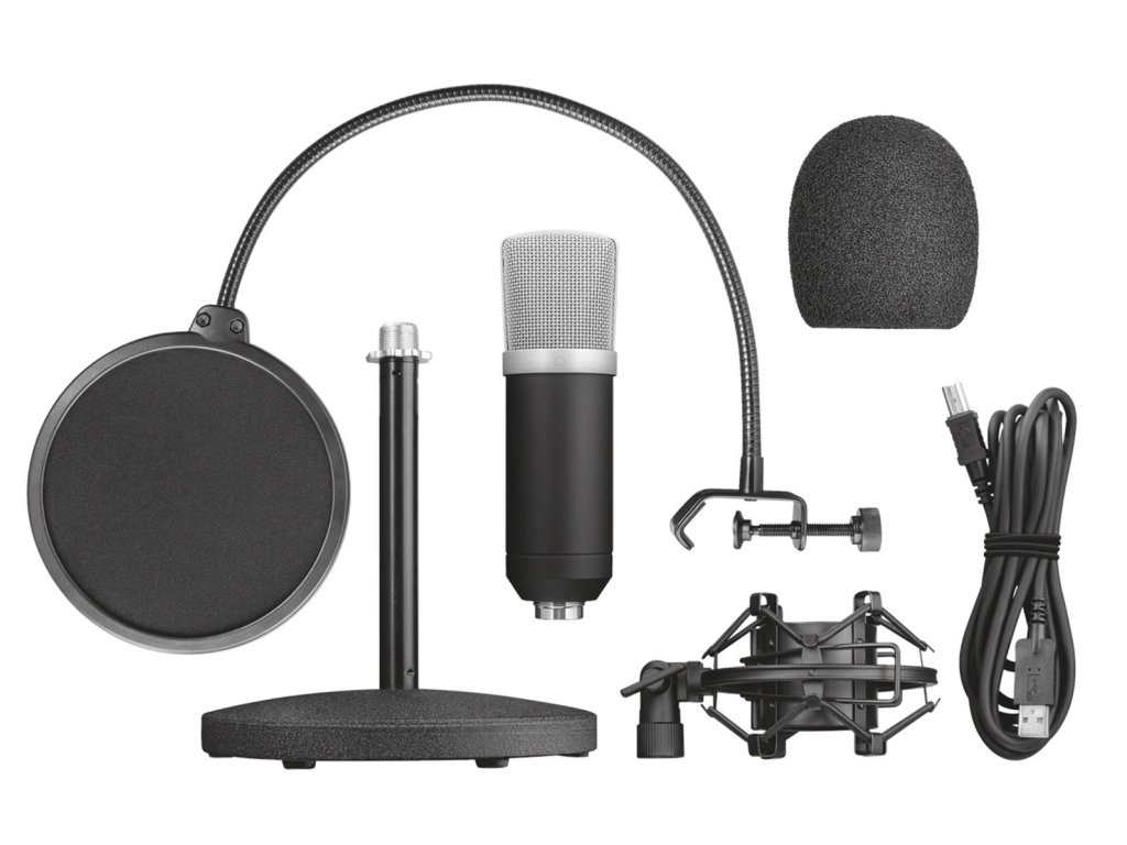 Včetně těžkého kovového stojánku, vysoce kvalitního antivibračního držáku a velkého dvojitého pop filtru.