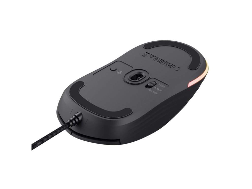 * polling rate posuvník na spodní strně myši (125, 500, 1000Hz)