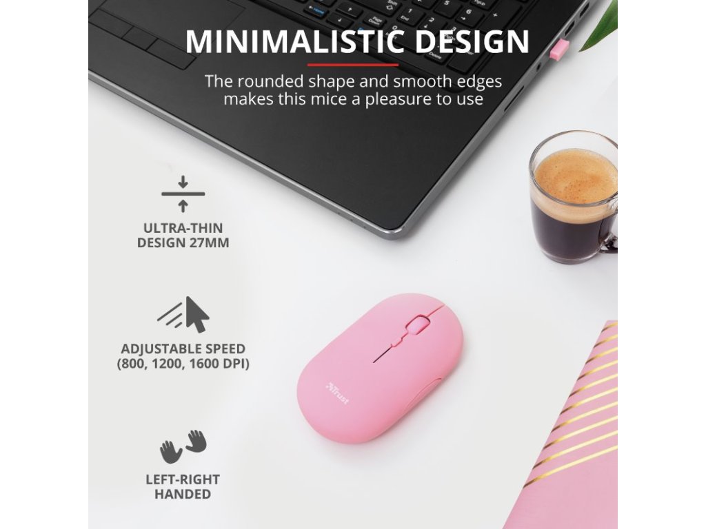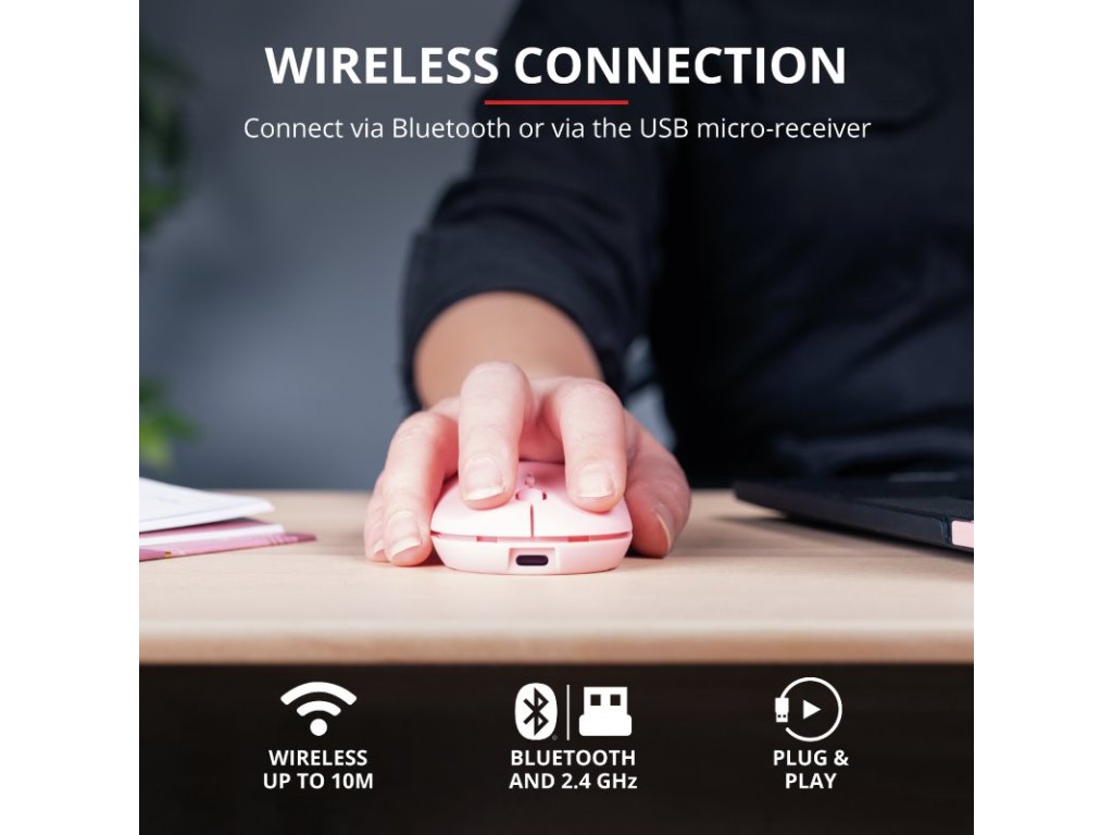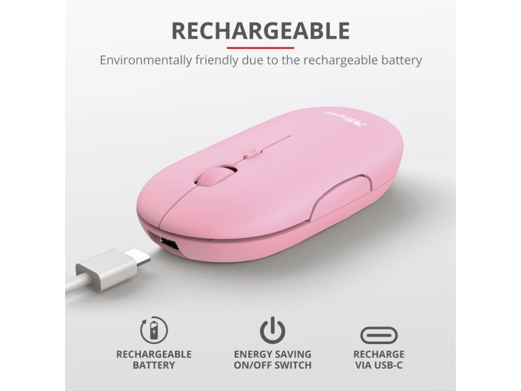 Trust Puck Rechargeable Bluetooth Wireless Mouse, růžová