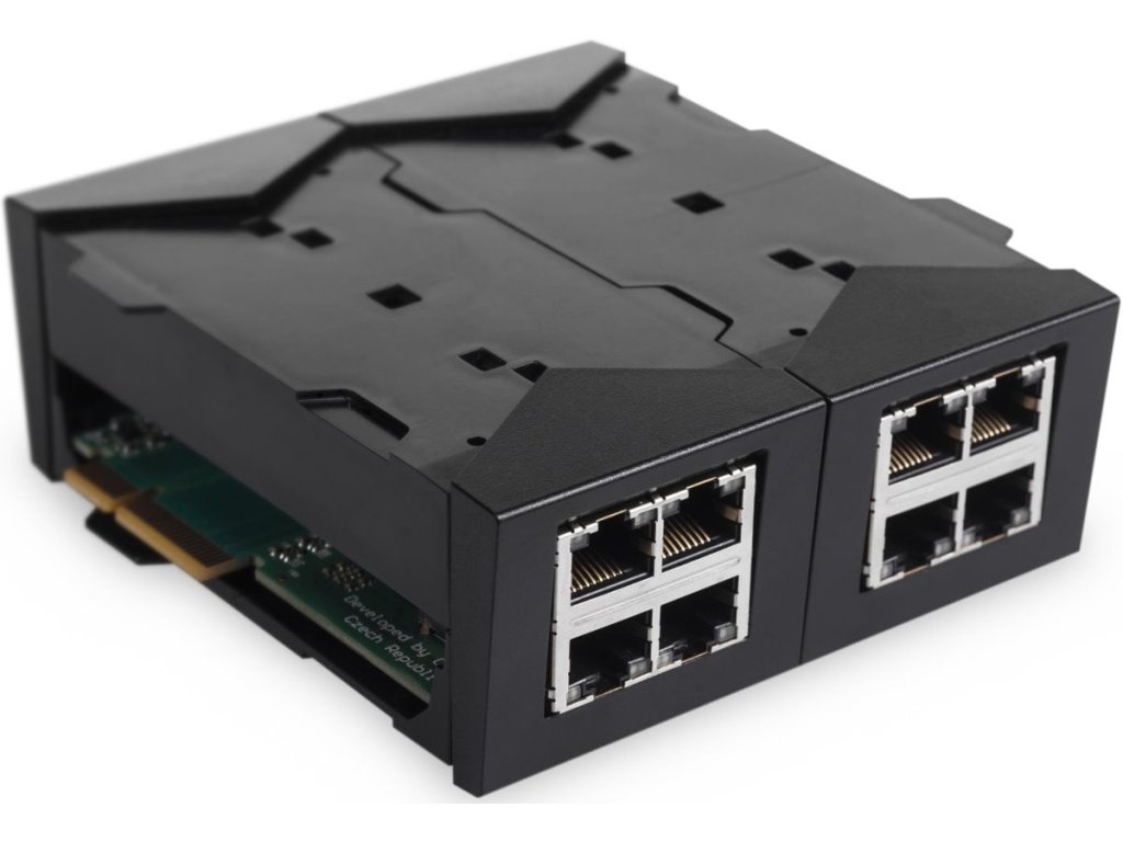 Modul MOX E je ideální volbou, pokud ve své sestavě potřebujete více ethernetových portů k připojení dalších zařízení do sítě. Má dvojnásobnou šířku (v porovnání s ostatními) a obsahuje osmiportový managovatelný switch pro gigabitový ethernet.