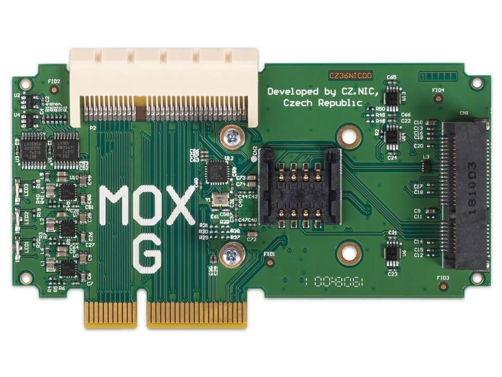 Modul MOX G s mPCIe slotem umožňuje připojit kompatibilní Wi-Fi kartu pro výrazně vyšší rychlost než SDIO (doporučujeme originální MOX Wi-Fi add-on mPCIe). Také je vybaven slotem na SIM kartu pro všechny, kteří uvažují o použití mPCIe LTE modemu.