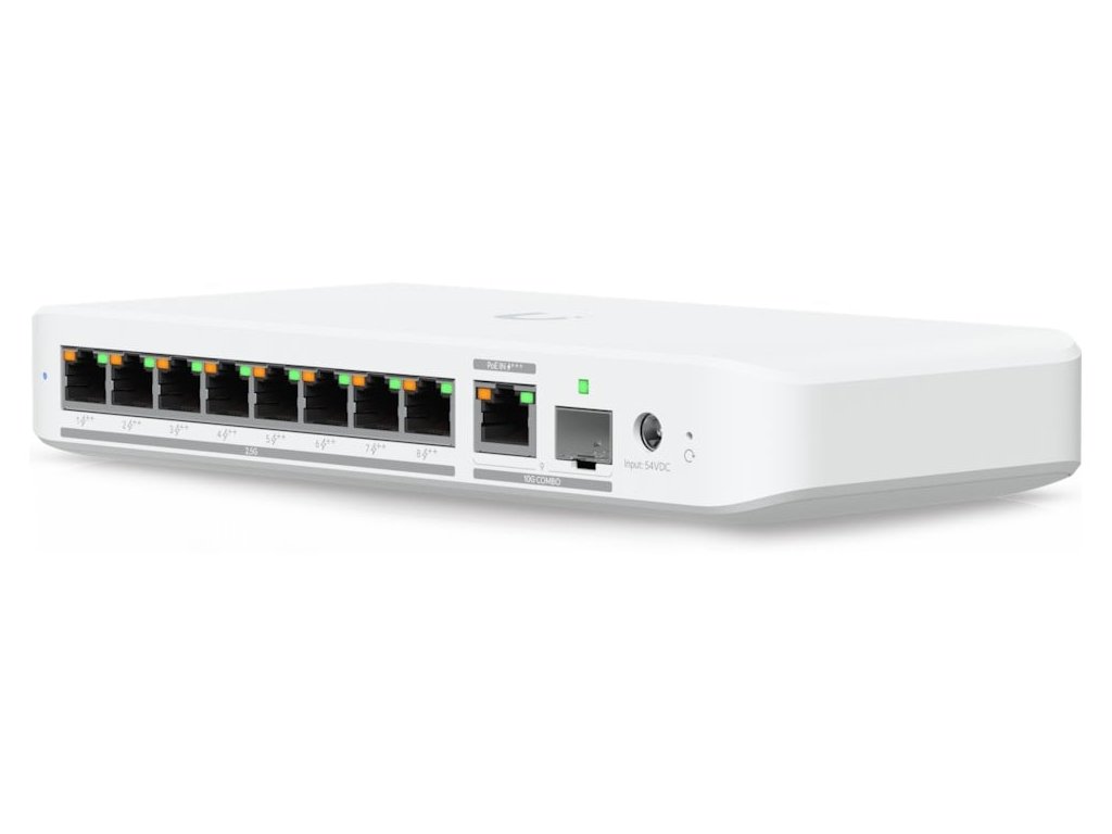Flexibilní switch nabízející osm 2,5 GbE RJ-45 PoE++ portů a jeden kombinovaný 10G RJ-45/SFP+ pro uplink. Jedná se o L2 switch s celkovou kapacitou 60 Gbps, rychlostí směrování 44,64 Mpps a PoE budgetem až 196 W (v závislosti na typu napájení). Switch lze napájet buď přes DC konektor, nebo pomocí PoE+++.