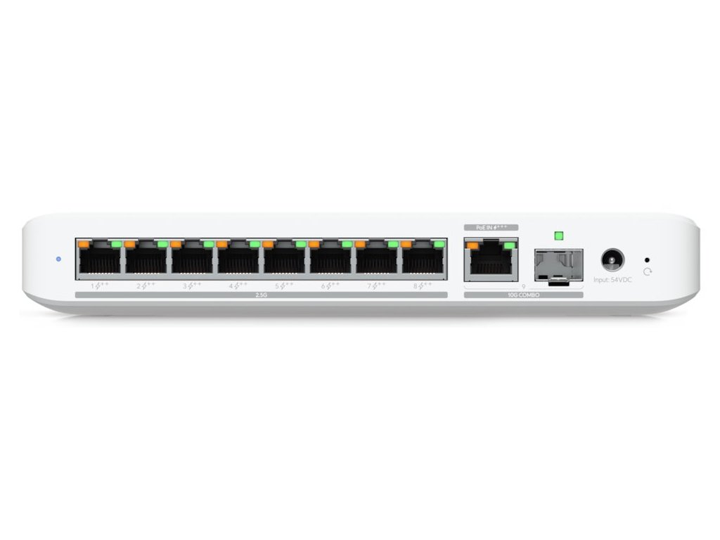 Flexibilní switch nabízející osm 2,5 GbE RJ-45 PoE++ portů a jeden kombinovaný 10G RJ-45/SFP+ pro uplink. Jedná se o L2 switch s celkovou kapacitou 60 Gbps, rychlostí směrování 44,64 Mpps a PoE budgetem až 196 W (v závislosti na typu napájení). Switch lze napájet buď přes DC konektor, nebo pomocí PoE+++.